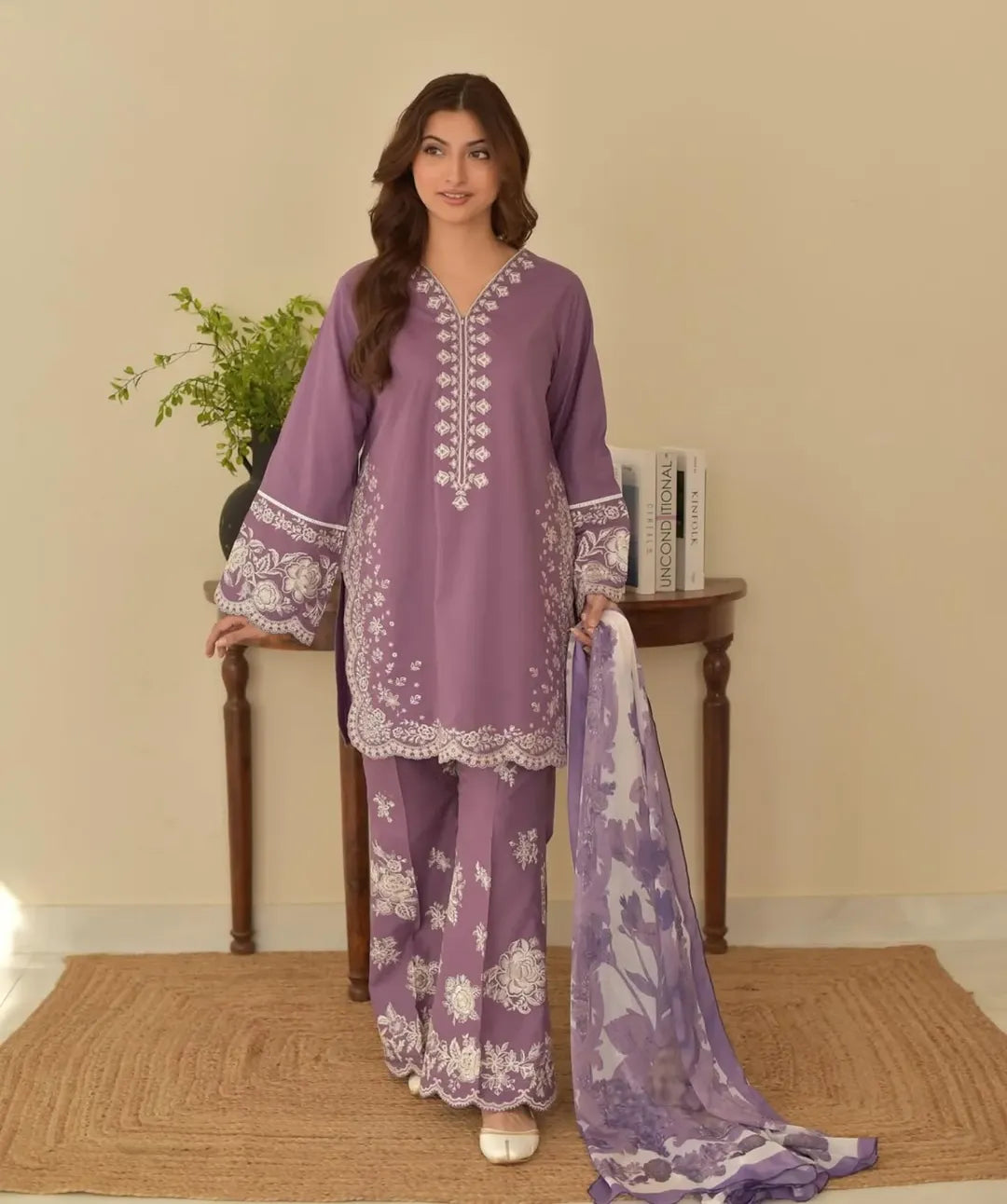 EMB SHIRT + FULLY EMB PLAZO WITH DIGITAL SHAFFON DUPPTA