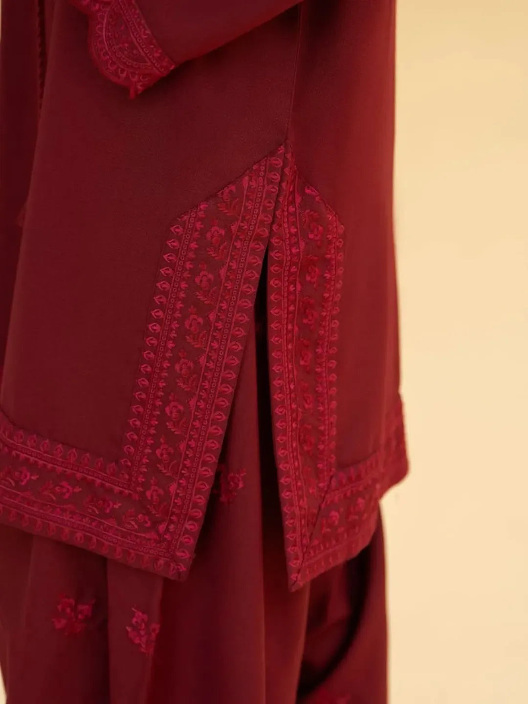 EMB SHIRT + PLAIN FARSHI PLAZO WITH DIGITAL SHAFFON DUPPTA
