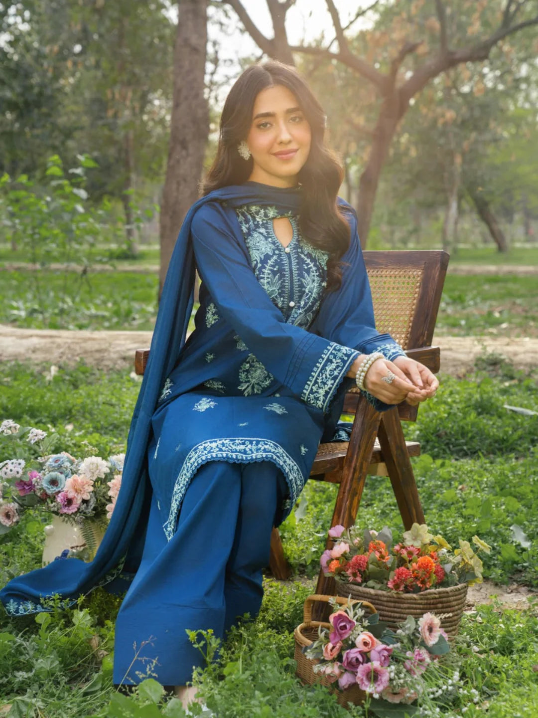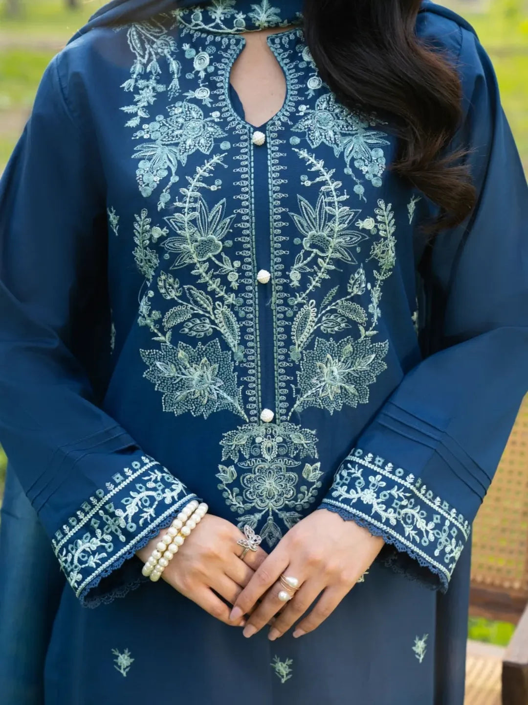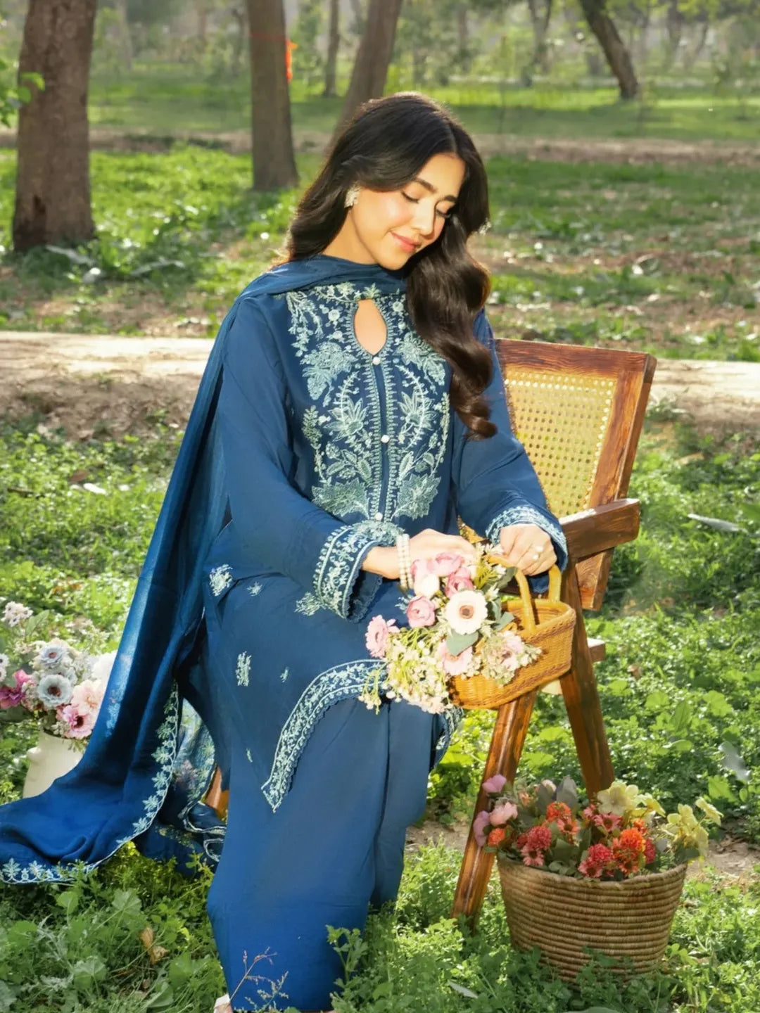 EMB SHIRT + PLAIN FARSHI SHALWAR WITH EMB SHAFFON DUPPTA