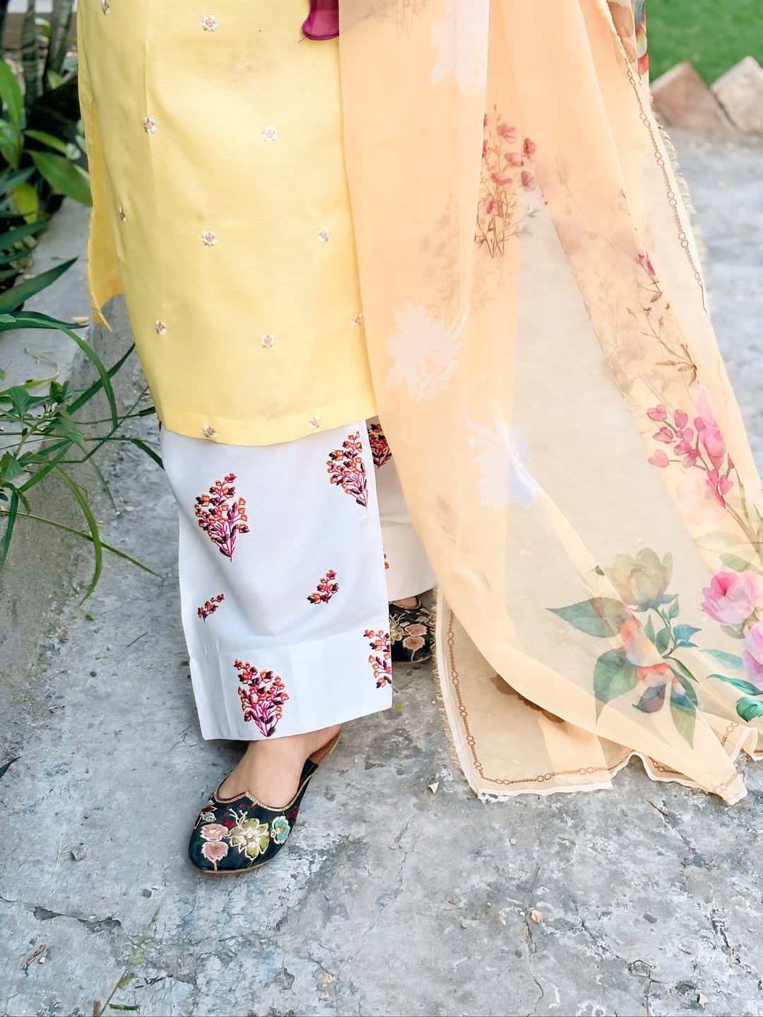 EMB COTTON SHIRT+COTTON TROUSER+CHIFFON DUPATTA